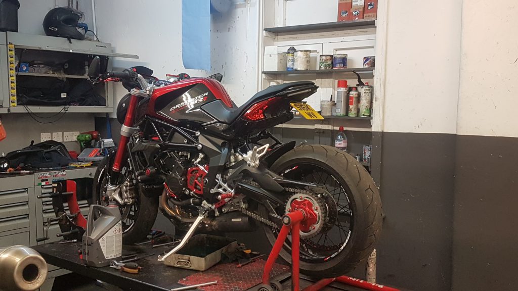 Az olajcsere az egyik legfontosabb része a motor karbantartásának. A motorolaj feladata a kenés, a hűtés és a szennyeződések eltávolítása. A MV Agusta modellek esetében ajánlott az olajat 5000 km-enként vagy évente cserélni, attól függően, hogy melyik következik be előbb. Ezen kívül a szűrők cseréje is elengedhetetlen, mivel ezek megakadályozzák, hogy a szennyeződések bejussanak a motorba. A szűrőket minden olajcsere alkalmával érdemes újra cserélni.